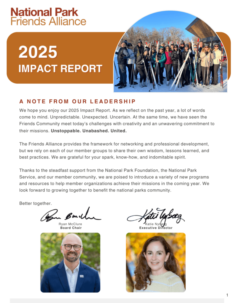 Join the community and be part of a network focused on philanthropy in national parks. Membership in the Friends Alliance gives you access to professional networking opportunities, discounts on the annual meetings, and resources to support your park partnership.